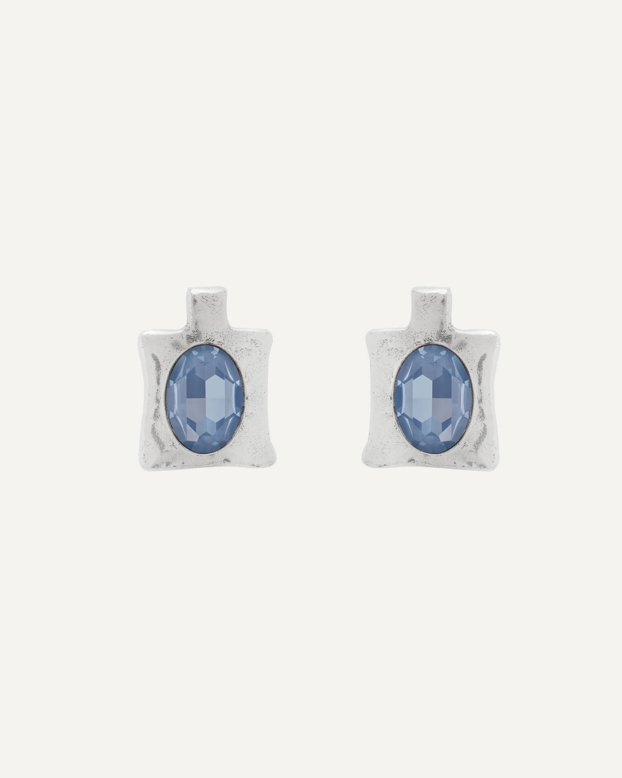 Pendientes pequeños de forma cuadrada con un cristal Swarovski® ovalado en el centro.